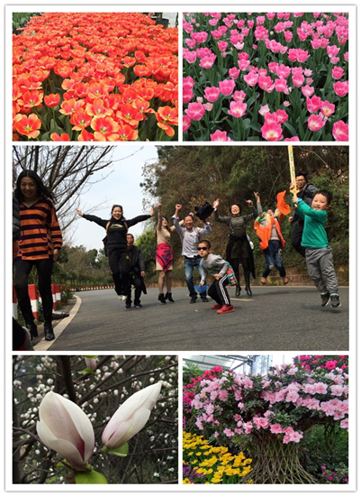 下午,公司举行了观景赏花、摄影、棋牌、爬山活动。满园春色关不住,樱花、桃花、梨花、海棠、郁金香、风信子、仙客来、山茶、玉兰、金合欢、百合、三角梅、茉莉、腊梅、红叶等千万株花卉竞相开放,大家徜徉其中感受着春天的气息,仿佛走进人间仙境,世外桃源。