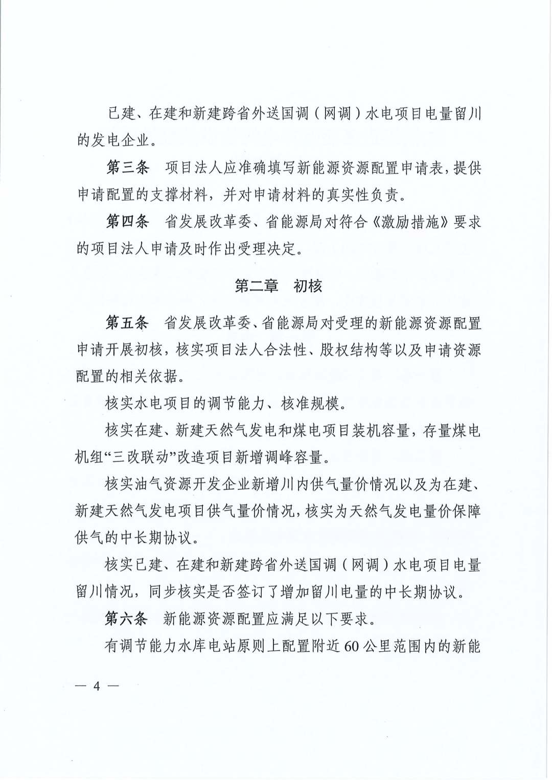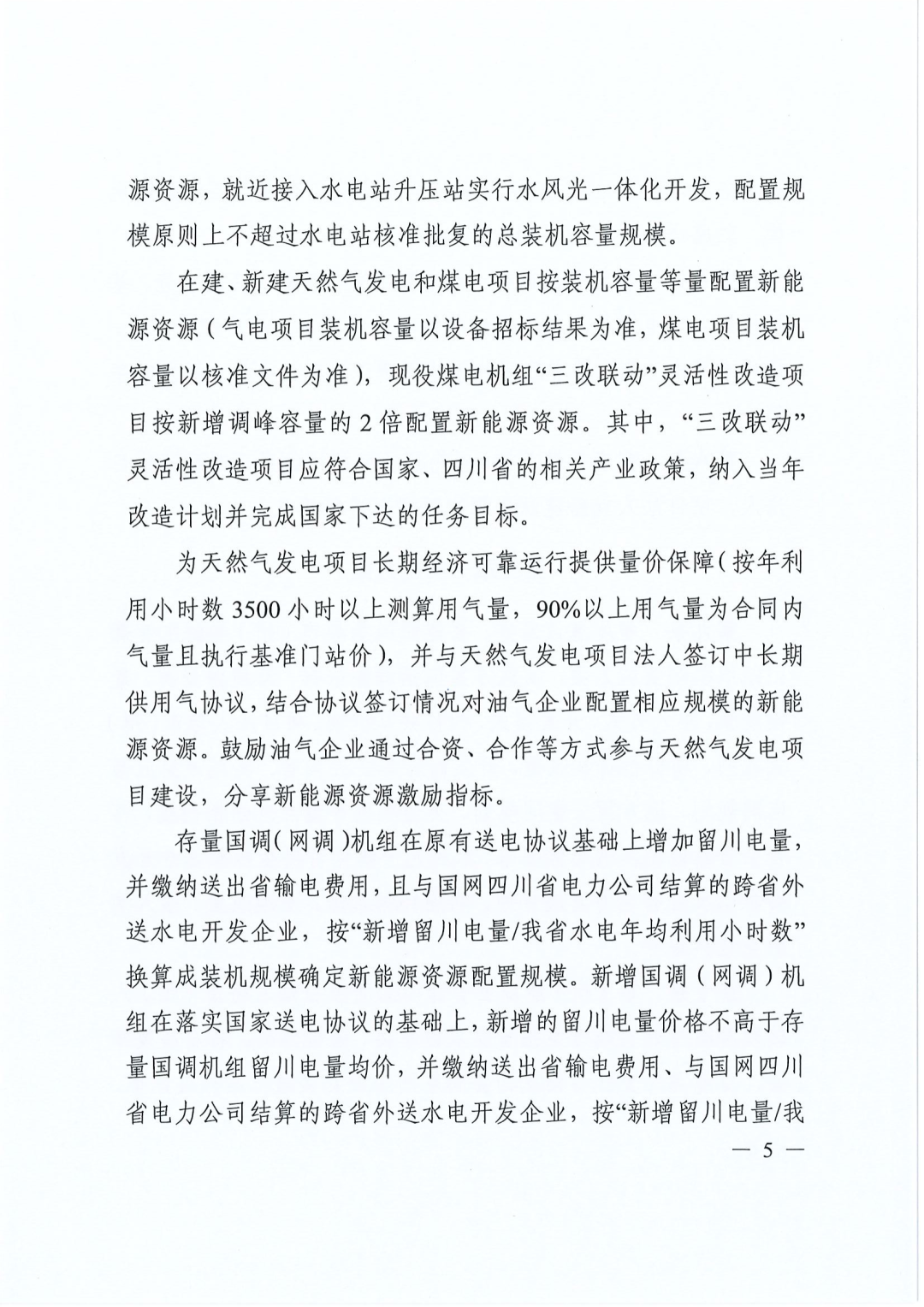 对在建、新建天然气发电和煤电项目按装机容量等量配置新能源资源(气电项目装机容量以设备招标结果为准,煤电项目装机容量以核准文件为准),现役煤电机组“三改联动”灵活性改造项目按新增调峰容量的2倍配置新能源资源。其中,“三改联动”灵活性改造项目应符合国家、四川省的相关产业政策,纳入当年改造计划并完成国家下达的任务目标。
